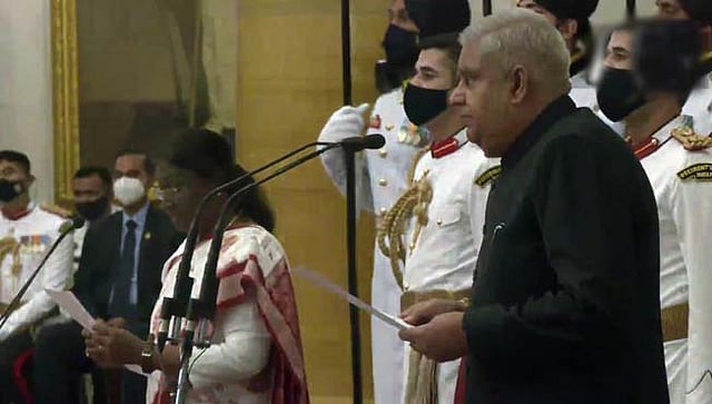देशाचे चौदावे उपराष्ट्रपती म्हणून जगदीप धनकड यांनी गुरुवारी पद आणि गोपनियतेची शपथ घेतली. राष्ट्रपती भवनात झालेल्या शानदार कार्यक्रमात राष्ट्रपती द्रौपदी मुर्मू यांच्याकडून त्यांनी ही शपथ घेतली. अलिकडेच पार पडलेल्या उपराष्ट्रपती निवडणुकीत राष्ट्रीय लोकशाही आघाडीचे उमेदवार धनकड यांनी विरोधी गोटाच्या उमेदवार मार्गारेट अल्वा यांचा पराभव केला होता. धनकड यांना 528 तर अल्वा यांना 182 मते मिळाली होती.