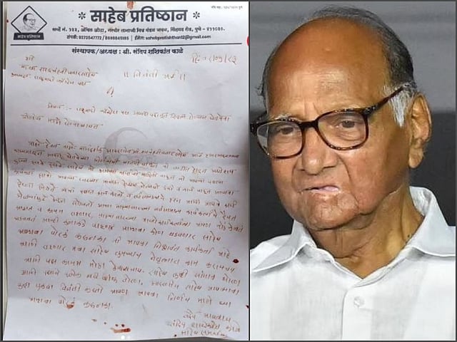 पुण्यातील एका कार्यकर्त्याने मात्र निष्ठेचं नवीन परिमाण घालून दिलं आहे. साहेब प्रतिष्ठान तसेच राष्ट्रवादी काँग्रेसचे कार्यकर्ते संदीप काळे यांनी शरद पवार यांनी राजीनामा मागे घ्यावा यासाठी स्वत:च्या रक्ताने पत्र लिहिलं आहे. 'आपण घेतलेल्या निर्णयाची बातमी वाचून व्यथित होऊन मी हे पत्र लिहीत आहे… आम्हाला पोरकं करू नका. साहेब मी आपला निष्ठावान कार्यकर्ता आहे. मला तुमच्या नेतृत्वात काम करायच आहे. आपण आपला निर्णय मागे घ्यावा ही विनंती.' असा मजकूर संदीप यांनी या पत्रात लिहिला आहे.