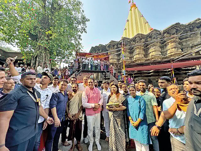 कोल्हापूर : अभिनेता गोविंदाने सोमवारी करवीरनिवासिनी श्री अंबाबाईचे दर्शन घेतले. यावेळी त्याने मंदिरातील मातृलिंगाचेही दर्शन घेतले. हातकणंगले लोकसभा मतदारसंघाचे शिवसेनेचे उमेदवार धैर्यशील माने यांच्या प्रचारासाठी गोविंदा कोल्हापुरात आले होते. सकाळी त्यांनी अंबाबाई मंदिरात जाऊन दर्शन घेतले. गोविंदा मंदिरात आल्यानंतर चाहत्यांनी त्याला गराडा घातला. सुमारे तासभर गोविंदा मंदिर परिसरात होता.