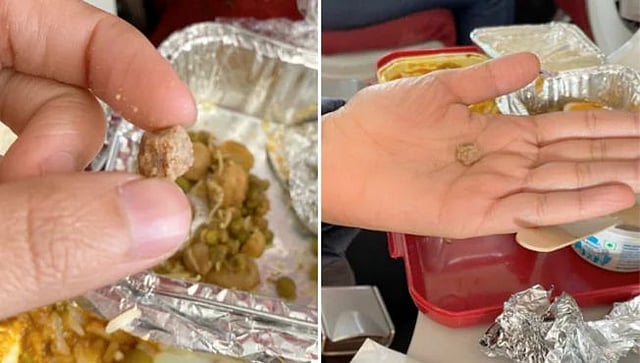 Air India : एका महिला ट्विवटर युजरने जेवणाची दोन छायाचित्रे शेअर केली. याच्या एका छायाचित्रात तिच्या हातात एक छोटा दगड आहे. तर दुस-या छायाचित्रात ज्या फुड पॅकेटमधून तो निघाला ते पॅकेट्स दिसत आहे. ट्विटरवरून तक्रार करणा-या या महिलेचे नाव सर्वप्रिया सांगवान असे आहे. एअर इंडियाच्या फ्लाइट 215 मधील जेवणात हा दगड सापडल्याची तक्रार तीने केली आहे.