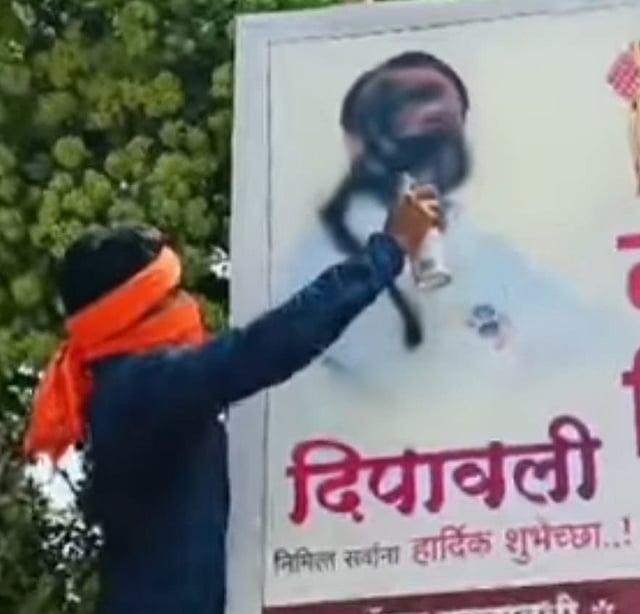 बारामती- निरा रस्त्यावर लावलेल्या एका फलकावर उपमुख्यमंत्री अजित पवार यांचा वरील बाजूस फोटो होता. संतप्त मराठा कार्यकर्त्यानी त्यास काळे फासले. दरम्यान घटनास्थळी वडगाव निंबाळकर पोलिस दाखल झाले आहेत.