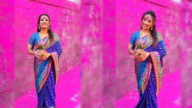 तिने या व्हिडिओमध्ये निळ्या रंगाची सुंदर साडी नेसलेली दिसते. गुलालाची उधळण आणि हातात नारळ घेत ती दर्शन घेतल्याचे सांगते.