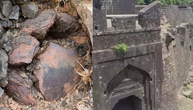 पन्हाळा, पुढारी वृत्तसेवा : पन्हाळा येथे तीन दरवाजा जवळील बुरुज दुर्ग सेवा प्रतिष्ठान कासारवाडी टोप (ता. हातकणंगले) यांचेकडून स्वच्छता करण्यात आली. यावेळी पुन्हा या संस्थेच्या दुर्गप्रेमी मावळ्यांना बुरुजांमध्ये फुटलेला आणखी एक तोफगोळा आढळून आला. त्यामुळे सदरचा गोळा भिंतीतून काढण्यात आला नाही. गोळ्यांचे भिंतीतच फुटून अनेक तुकडे झाले आहेत, अशी माहिती दुर्ग सेवा प्रतिष्ठानचे रोहन चेचर यांनी दिली.