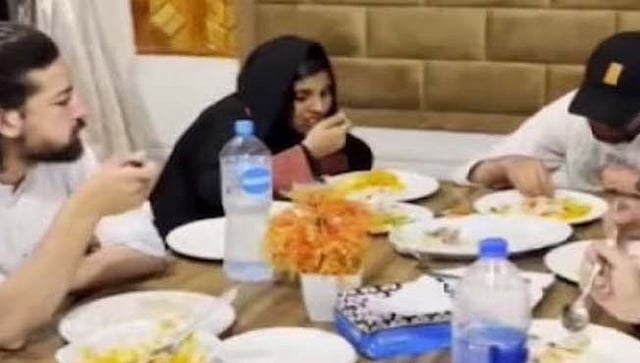 पुढारी ऑनलाईन : भारतातून पाकिस्तानात गेलेल्या अंजूने इस्लाम धर्म स्वीकारुन नसरुल्लाह याच्याशी निकाह केला. अंजूचे नवीन नाव फातिमा असे आहे. ती गेल्या काही दिवसांपासून चर्चेत आहे. आता तिचा एक व्हिडिओ सोशल मीडियावर व्हायरल झाला आहे. ज्यात ती नसरुल्लाह आणि त्याच्या मित्रांसोबत रात्रीचे जेवण जेवत असल्याचे दिसत आहे. या व्हिडिओत अंजू बुरख्यात दिसत आहे. पाकिस्तानातील एका पत्रकाराने हा व्हिडिओ ट्विटरवर शेअर केला आहे. पण त्याची पुष्टी झालेली नाही. (Anju Nasrullah News)