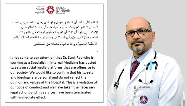 हमासच्या हल्लानंतर इस्रायलनेही जोरदार प्रत्युत्तर दिले. इस्रायलच्या हल्लात गाझामधील ३ हजार लोकांचा मृत्यू झाला. अशावेळीच डॉक्टरने ही पोस्ट केल्यामुळे कारवाईला सामोरे जावे लागले आहे. रॉयल बहरीन हॉस्पिटलने याबाबत म्हटले की, "डॉ. सुनिल राव हे औषधांचे विशेषज्ञ म्हणून काम करत आहेत. त्यांनी आपल्या समाजाबाबत आक्षेपार्ह ट्वीट केले आहे. डॉक्टरांनी आमच्या आचारसंहितेचे उल्लंघन केलय. त्यामुळे आम्ही त्यांच्यावर कायदेशीर कारवाई करत आहोत. त्यांची सेवा तात्काळ संपुष्टात आणण्यात आली आहे." (Anti-Palestine Tweet)