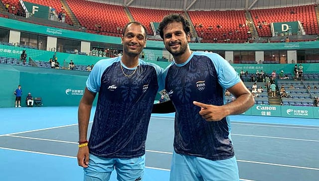 पुढारी ऑनलाईन : चीनमधील हँगझोऊ येथे सुरु असलेल्या आशियाई क्रीडा स्पर्धेत भारताच्या साकेथ मायनेनी आणि रामकुमार रामनाथन यांना टेनिसमध्ये पुरुष दुहेरीच्या अंतिम फेरीत चायनीज तैपेईच्या जेसन जंग आणि यू-हसिउ सू जोडीकडून ४-६, ४-६ असा पराभव पत्करावा लागला. यामुळे त्यांना रौप्यपदकावर समाधान मानावे लागले. अंतिम सामना १ तास १२ मिनिटे चालला.