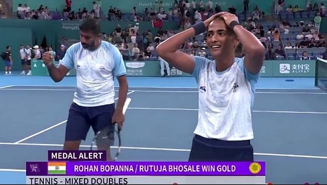पुढारी ऑनलाईन : चीनमधील हंगझोऊ येथे सुरु असलेल्या आशियाई क्रीडा स्पर्धेच्या टेनिस मिश्र दुहेरीत आज भारतीय जोडी रोहन बोपण्णा आणि ऋतुजा भोसले (Rohan Bopanna-Rutuja Bhosale) यांनी इतिहास रचला. त्यांनी चिनी तैपेईची जोडी त्सुंग-हाओ हुआंग आणि एन-शूओ लियांग यांना ट्रायब्रेकरमध्ये २-६, ६-३,१०-४ अशा सेटमध्ये हरवत सुवर्णपदक जिंकले. (Asian Games 2023) पहिला सेट हरल्यानंतर रोहन बोपण्णा आणि ऋतुजा भोसले यांनी जोरदार कमबॅक केले. त्यानंतर ट्रायब्रेकरमध्ये त्यांनी चिनी तैपेईच्या जोडीवर मात केली.