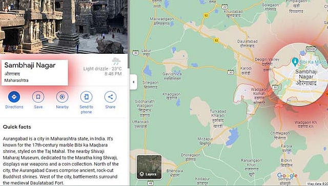 औरंगाबाद, पुढारी वृत्तसेवा : औरंगाबाद शहराचे नाव छत्रपती संभाजीनगर करण्याचा निर्णय राज्य मंत्रिमंडळाने नुकताच घेतला आहे. या निर्णयाला केंद्र शासनाकडून मंजुरी मिळणे बाकी आहे. पण त्याआधीच मंगळवारी गूगल मॅपने संभाजीनगर असे नामकरण करुन केल्याचे आढळून आले. या बदलामुळे अनेकांच्या भुवया उंचावल्या आहेत.