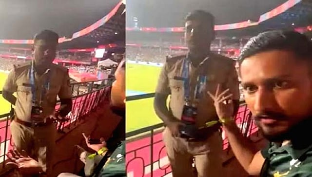 सामन्यादरम्यान पाकिस्तान झिंदाबादचा नारा लावण्यापासून रोखण्यात आल्याने एका पाकिस्तानी चाहत्याने निराशा व्यक्त केली. पाकिस्तानचा संघ बॅटींग करताना ही घटना घडली. एक व्हिडीओ व्हायरल झाला आहे, ज्यामध्ये पोलीस कर्मचाऱ्याने चाहत्याला पाकिस्तान झिंदाबादच्या घोषणा देण्यापासून रोखल्याचे दिसत आहे. यावेळी हा पाकिस्तानचा चाहता आणि पोलिसात बाचाबाचीही झाली.