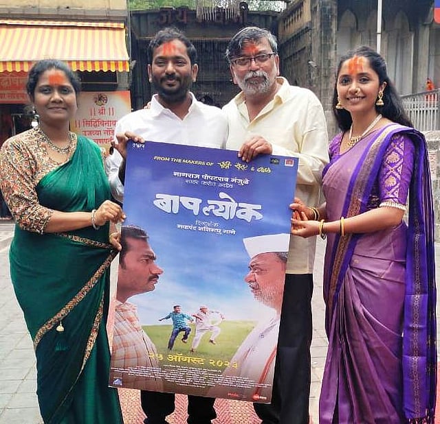 पुढारी ऑनलाईन डेस्क : वडील मुलाच्या नात्याची हळुवार गोष्ट घेऊन २५ ऑगस्टला बापल्योक चित्रपट आपल्या भेटीला येत आहे. नागराज मंजुळे यांची प्रस्तुती असलेला 'बापल्योक' हा मराठी चित्रपट सध्या त्याच्या ट्रेलर आणि गीतांमुळे चांगलाच गाजतोय. नुकतीच या चित्रपटाच्या टीमने तुळजापूरच्या तुळजाभवानी आईचे दर्शन घेऊन चित्रपटाच्या यशासाठी प्रार्थना केली.