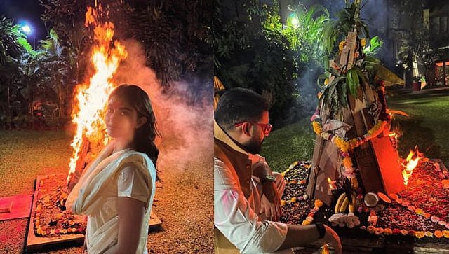 तिसऱ्या फोटोमध्ये अभिषेक होळीसमोर बसलेला दिसतो. तो होळीकडे पाहताना दिसतो. आणखी एका फोटोमध्ये जया बच्चन होळीजवळ दिसत आहे. या सर्व फोटोंमध्ये अमिताभ बच्चन दिसत नाही. तर एका फोटोमध्ये ऐश्वर्या रायची झलक दिसते.