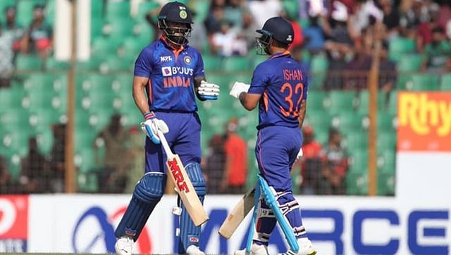 सलामीसाठी मैदानात उतरलेल्या ईशान किशन आणि शिखर धवन जोडीने सावध सुरुवात केली होती. पण पाचव्या षटकात भारताला पहिला धक्का बसला. शिखर धवनला मेहदी हसनने पायचित केले. ईशान किशनला बऱ्याच दिवसांनी भारताकडून खेळण्याची संधी मिळाली. त्याचा पुरेपूर फायदा उठवत रोहितच्या जागी आलेल्या किशनने आपले शतक पूर्ण केले. किशन-विराट जोडीने शानदार भागीदारी केली. २४ षटकांनंतर भारताने एक गडी गमावत १६२ धावा केल्या होत्या.