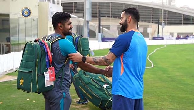आशिया कपसाठी टीम इंडिया यूएईला पोहोचली आहे. दरम्यान, सरावादरम्यान टीम इंडियाचे अनेक खेळाडू पाकिस्तान आणि अफगाणिस्तानच्या खेळाडूंना भेटले. हार्दिक पांड्या आणि युझवेंद्र चहल यांनी राशिद खान आणि मोहम्मद नबी यांची भेट घेतली. यादरम्यान विराट कोहलीने बाबर आझमची भेट घेऊन हस्तांदोलन केले. बीसीसीआयने आपल्या अधिकृत ट्विटर हँडलवर त्याचा व्हिडिओ शेअर केला आहे. जो वेगाने व्हायरल होत आहे. (IND vs PAK)