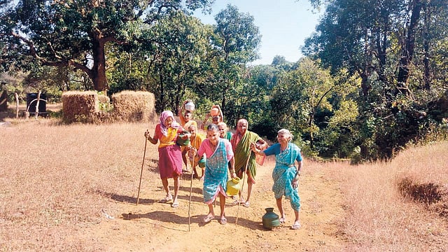 नेरसा ग्रामपंचायतीच्या व्याप्तीमधील गवाळी गाव दाट जंगलात वसले आहे. भीमगड अभयारण्याचा प्रदेश असल्याने या गावाचा रस्ता आणि पुलांच्या निर्मितीत वन विभागाचे नियम आड येतात. परिणामी, पावसाळ्यात गावाला दोन महिने बेटाचे स्वरूप प्राप्त होते. ते कमी म्हणून की काय आता चक्क डिसेंबर महिन्यातच गावात भीषण पाणीटंचाई निर्माण झाली आहे. पाणी सोडण्यासाठी व मोटर दुरुस्तीचे काम करण्यासाठी गवाळी येथे कोणीही वॉटरमन जाण्यासाठी तयार नाही. पिण्यासाठी देखील पाणी मिळत नसल्याने गावापासून एक किलोमीटर लांब अंतरावर असलेल्या विहिरीवरून पाणी आणण्याची वेळ वृद्ध महिलांवर आली आहे. पंचाहत्तरी पार केलेल्या या वृद्ध महिलांना चालणेदेखील कठीण असताना त्यांना काठीचा आधार घेत पाण्यासाठी भटकंती करावी लागत आहे.