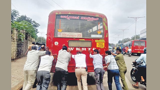 रस्त्यातच बस बंद पडल्याने रहदारीची कोंडी वाढली. ती कोंडी फोडण्यासाठी वाहतूक निरीक्षक पोलिसाने स्थानिकांच्या मदतीने बस रस्त्याच्या कडेला थांबवली. त्यानंतर वाहतूक सुरळीत झाली. यापूर्वीही परिवहन मंडळाच्या बस अशोक सर्कल, चन्नम्मा सर्कल, कॉलेज रोड, केएलई रोड या ठिकाणी बंद पडल्याचे प्रकार घडले आहेत.
