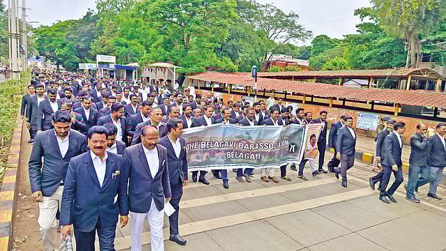 तत्पूर्वी सर्व वकिलांनी बेळगाव बार असोसिएशनचे अध्यक्ष अॅड. एस. एस. किवडसण्णावर यांच्या नेतृत्वाखाली चन्नम्मा चौकात रास्ता रोको करण्यात आला. त्यानंतर जिल्हाधिकारी कार्यालयावर मोर्चा काढून निवेदन देण्यात आले.