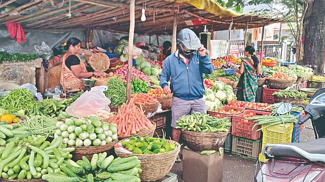 कृषी उत्पन्न बाजार समितीमध्ये (एपीएमसी) भाजीपाला दरात वाढ झाली आहे. रताळी दरामध्ये किंचित वाढ झाली असून प्रतिक्विंटल दर 1,200 ते 1,800 रूपये झाला आहे. पालक, मेथी, कोथिंबीर आदींचे दर वाढले आहेत. शनिवार दि.3 रोजी कांदा प्रतिक्विंटल दर 1,000 ते 2,400 रूपये होता. बाजारात 85 ट्रक कांद्याची आवक झाली आहे. बटाटा प्रति क्विंटल दर 1,500 ते 2,300 रूपये असून किलोचा दर 30 ते 35 रूपये आहे. कोथिंबीर जुडी दर 10 ते 15 रुपये आहे. बाजारात कडधान्याच्या दरात किंचित वाढ झाली आहे.