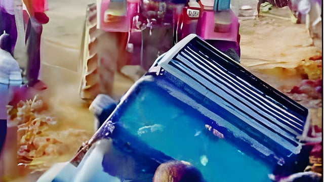 फिश मार्केटनजीक भूसंपादन न करता तसेच शेतकऱ्यांना जमिनीची भरपाई न देता सुरू असलेल्या रस्ता कामाला न्यायालयाने स्थगिती दिली आहे. यामुळे येथील पुलाचे काम सध्या ठप्प आहे. नागरिकांची गैरसोय टाळण्यासाठी दुचाकी जाण्याकरिता खड्ड्यातून चार फुटाची अरुंद वाट करून देण्यात आली आहे. या धोकादायक जागेवरून एकाने थार कार नेण्याचा प्रयत्न केला. पण हे धाडस त्याच्या अंगलट आले.