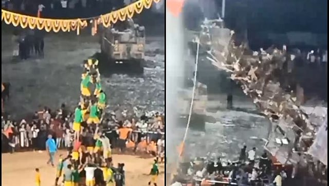 भंडारा, पुढारी वृत्तसेवा : भंडारा शहरातील शास्त्री चौकातील दसरा मैदानावर विदर्भस्तरीय दहीहंडी स्पर्धेचे आयोजन आज करण्यात आले होते. स्पर्धेदरम्यान दहीहंडीचे एक टॉवर अचानक कोसळले.