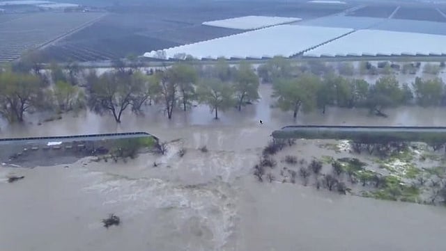 पुढारी ऑनलाईन डेस्क : California Flood : अमेरिकेतील उत्तर कॅलिफोर्नियामध्ये मुसळधार पाऊस आणि पुरामुळे जनजीवन विस्कळीत झाले आहे. पाजारो नदीवर बांधण्यात आलेले बंधारा फुटल्याने आजूबाजूचा परिसर पुराच्या पाण्यात बुडाला आहे. त्यामुळे हजारो लोकांना राहते घर सोडून स्थलांतर करावे लागले आहे.