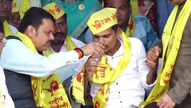राज्याचे उपमुख्यमंत्री देवेंद्र फडणवीस आज (शनिवार) चंद्रपुरात दाखल झाले. जिल्हाधिकारी कार्यालयासमोर 23 दिवसांपासून उपोषणावर बसलेले राष्ट्रीय ओबीसी विद्यार्थी महासंघाचे जिल्हाध्यक्ष रविंद्र टोंगे यांना लिंबू पाणी पाजून अन्नत्याग आंदोलनाची सांगता केली. यावेळी वनमंत्री तथा पालकमंत्री सुधीर मुनगंटीवार, आमदार किशोर जोरगेवार, आमदार किर्तिकुमार भांगडिया, परिणय फुके, ओबीसी महासंघाचे बबनराव तायवाडे, सचिन राजुरकर व अन्य पदाधिकारी उपस्थित होते.