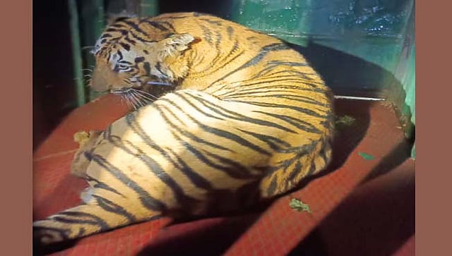 चंद्रपूर ; पुढारी वृत्तसेवा ब्रम्हपूरी तालुक्यात धुमाकूळ घालून दहशत पसरविणाऱ्या एका पट्टेदार वाघाला डार्ट मारून बेशुद्ध करण्यात आले. त्यानंतर त्याला जेरबंद करण्यात आले. ही घटना काल (सोमवार) रात्री साडेसात वाजण्याच्या सुमारास आवळगाव शेतशिवारात घडली. जेरबंद वाघाला चंद्रपूर येथील ट्रांझिट ट्रिंटमेंट सेंटरमध्ये हलविण्यात आले आहे. वाघ जेरबंद झाल्याने शेतकऱ्यांनी सुटकेचा नि:श्वास टाकला आहे.
