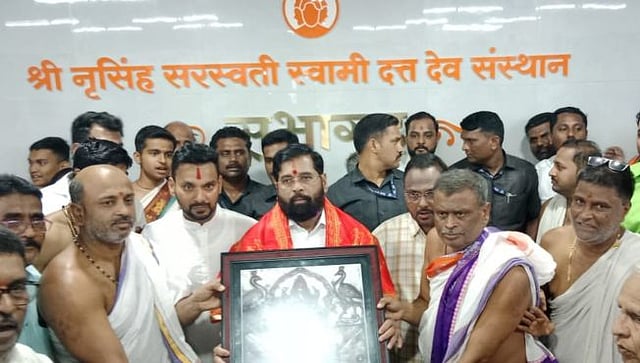 नृसिंहवाडी; पुढारी वृत्तसेवा; येथील दत्त मंदिरात लोकसभेच्या निवडणुक प्रचाराच्या रणधुमाळीत मुख्यमंत्री एकनाथ शिंदे यांनी दत्त चरणी प्रार्थना करीत महायुतीच्या विजयासाठी साकडे घातले.