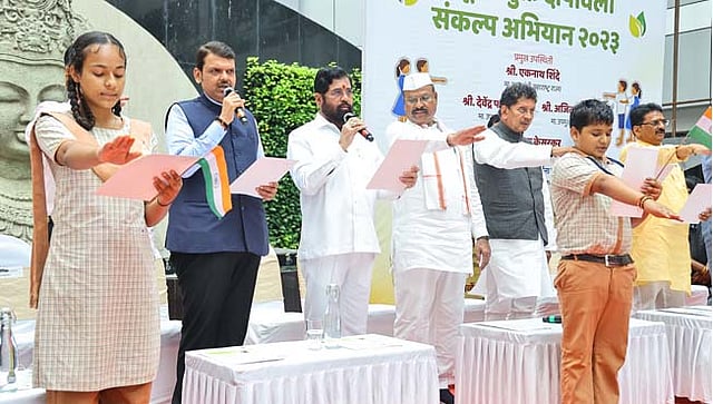 मुंबई, पुढारी वृत्तसेवा : 'प्रदूषणमुक्त दीपावली संकल्प अभियान -2023' अंतर्गत शालेय विद्यार्थ्यांना आज (दि. ८) मुख्यमंत्री एकनाथ शिंदे आणि उपमुख्यमंत्री देवेंद्र फडणवीस यांनी प्रदूषणमुक्त सण साजरे करण्याचा संकल्प करण्याची शपथ दिली. CM Eknath Shinde