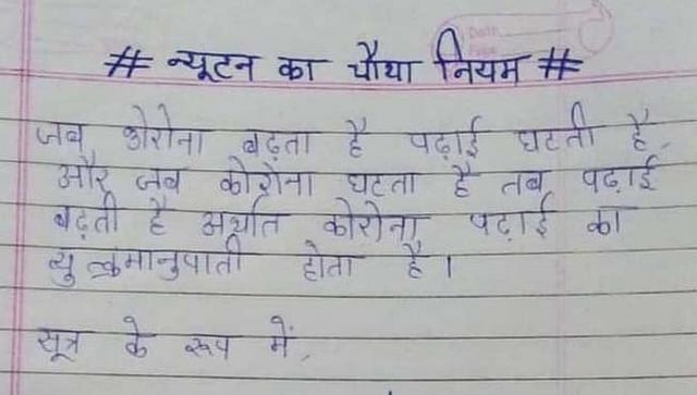शरण यांनी आपल्या ट्विटमध्ये लिहलं आहे की, " न्यूटनचा चौथा नियम : जेव्हा कोरोना वाढतो तेव्हा अभ्यास कमी होतो. जेव्हा कोरोना वाढतो तेव्हा अभ्यास वाढतो. याचा अर्थ कारोना कमी झाला की अभ्यास वाढतो." या शाळकरी मुलाने कोरोना आणि अभ्यास याचा संबंध स्पष्ट करताना एक समीकरण मांडलं आहे. हा शाळकरी मुलगा कोरोना युगातील न्यूटन आहे, असेही शरण यांनी म्हटलं आहे.