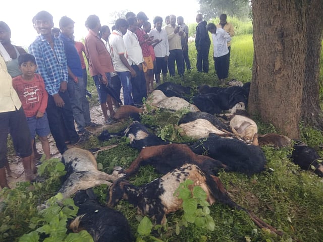 २६ शेळ्या विजेने ठार झाल्याची माहिती गावात होताच नागरीकांनी घटनास्थळावर मोठी गर्दी केली.