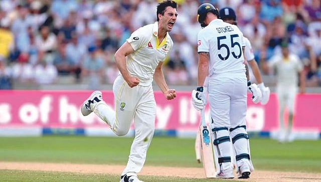 इंग्लंडने सोमवारी या सामन्याच्या चौथ्या दिवशी 2 बाद 28 या मागील धावसंख्येवरून खेळाला पुढे सुरुवात केली. मात्र, त्यानंतर ऑली पोप (14), जो रुट (46) व हॅरी ब्रुक (46) ठराविक अंतराने बाद होत गेले. दिवसभरात बाद होणारा ऑली पोप पहिला फलंदाज ठरला. कमिन्सने एका भेदक यॉर्करवर पोपचा त्रिफळा उडवत त्याची खेळी संपुष्टात आणली. (Eng vs Aus Ashes 2023)