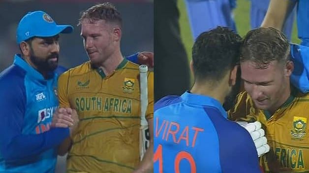 भारताने आफ्रिकेसमोर २३८ धावांचे आव्हान ठेवले होते. याच्या प्रत्युत्तरात दक्षिण आफ्रिकेचा संघ मैदानात उतरला. दक्षिण आफ्रिकेची सुरुवात अत्यंत खराब झाली. मात्र डेव्हिड मिलर फलंदाजीला आला आणि पाहता पाहता चित्र बदललं. मिलर याने ४७ चेंडूत ८ चौकार आणि ७ षटकार फटकावत १०६ धावांची नाबाद खेळी केली. त्याच्या झूंज अपयशी ठरली मात्र त्याने केलेली खेळीमुळे सारेच आवाक झाले. त्याने केलेल्या धुवांधार फलंदाजीला सर्वांनीच दाद दिली. सामना संपल्यानंतर कर्णधार रोहित शर्मा आणि माजी कर्णधार विराट कोहली यांनी मिलरची गळाभेट घेत त्याचे विशेष अभिनंदन केले. तसेच प्रेक्षकांनीही त्याच्या खेळीला उत्स्फूर्त दाद दिली.
