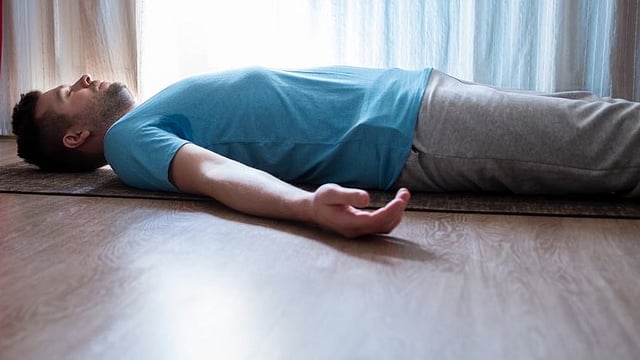 सर्वप्रथम शवासनात पाठीवर सरळ झोपा. संपूर्ण शरीर शिथिल करा. दीर्घ श्वसन करा. आसन जास्त आरामदायी होण्यासाठी पायाखाली उशी घेऊन जरा पायांना थोडे वर ठेवा. यानंतर हळुवारपणे आपले लक्ष संपूर्ण शरीरावर करा. एक खोल श्वास घ्या आणि शरीरातील संवेदनांबाबत जागृत करा. यानंतर शरीरातील प्रत्येक अवयवांकडे जाणीवपूर्वक लक्ष द्या. या अवस्थेत काही मिनिटे आराम करा. आता आपले शरीर आणि आसपासचा परिसर याबाबत जागृत व्हा, आपल्या उजव्या कुशीवर वळा आणि काही मिनिटे तसेच पडून रहा. यानंतर हळुवारपणे आणि सावकाश डोळे उघडा.