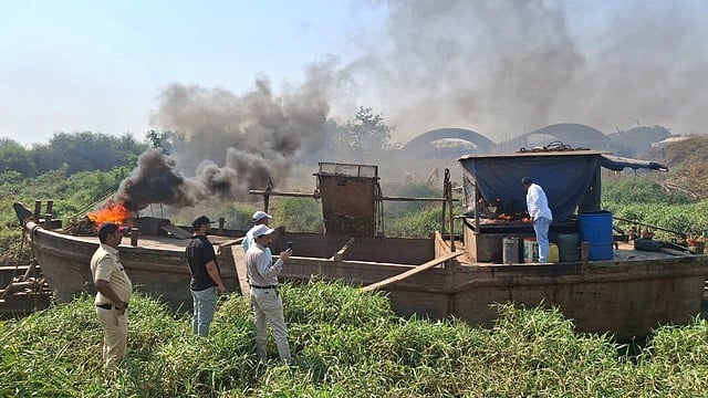 महसूल विभागाच्या अधिकाऱ्यांनी अत्यंत कौशल्याने रेती माफियांच्या बोटींसह सक्शन पंप जाळून नष्ट करण्याची मोहीम सुरू केली आहे. सोमवारी (दि.10) सकाळीच महसूल, सागरी महामंडळ, वन विभागाचे अधिकारी आणि पोलिसांनी मुंब्रा, दिवा, कोपर, पश्चिम डोंबिवलीतील जुनी डोंबिवली, मोठागावच्या खाडी किनारी उभ्या असलेल्या रेती माफियांच्या उत्खनन बोटींसह सक्शन पंप जाळून टाकले.