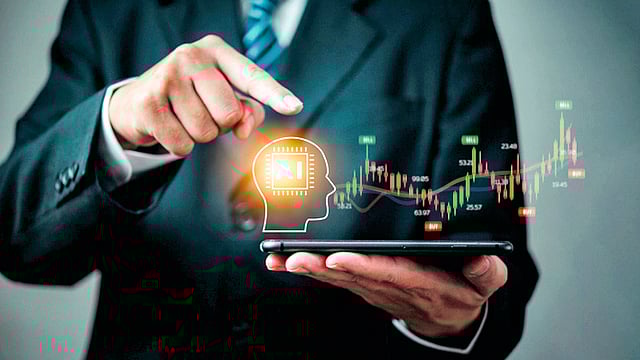 4) कृत्रिम बुद्धिमत्ता व्यापार वाढविते ः बाजार आणि कंपनी यांचे संशोधन करताना त्या क्षेत्रातील तज्ज्ञ लोकांची मानवी शक्ती प्रचंड मोठ्या प्रमाणात खर्च होत असते. दहा तज्ज्ञांचे कार्य एका क्षणात गणिती मॉडेलनुसार ए.आय. तंत्रज्ञानाने केले जाऊ शकते. त्यामुळे गुंतवणुकीचे त्वरित निर्णय घेता येतील. जटिल डेटाबेस आणि रीअल-टाईम माहिती त्वरित मिळते. या माहिती आधारे गुंतवणुकीच्या संधी शोधण्यात यश मिळते. त्याप्रमाणे प्रोग्रामिंग करून शेअर्स खरेदी अथवा विक्री करता येते त्याचा परिणाम व्यापार वाढविण्यास मदत होते. त्यामुळे पोर्टफोलिओ व्यवस्थापन प्रभावी करता येते. त्याच प्रमाणे मार्केटमधील चढ-उतार प्रमाणे नियंत्रित करणारे रोबो-सल्लागार अधिक प्रचलित होत आहेत. रोबो सल्लागाराकडून एआय पोर्टफोलिओ उत्तम प्रकारे व्यवस्थापित केले जात आहेत. प्रत्येक गुंतवणूक दाराला एआय-चालित प्लॅटफॉर्मवरून स्वयंचलित सूचना देऊन अल्गोरिदम-आधारित पोर्टफोलिओ व्यवस्थापन सेवा चागल्या पद्धतीने देता येतात. ते विशेषतः सर्वसामान्य गुंतवणूकदारांसाठी उपयुक्त आहेत. एआय तंत्रज्ञानामुळे दिवसातून 24 तास सातही दिवस गुंतवणूक केलेल्या पोर्टफोलिओचे सातत्याने निरीक्षण करू शकते. बाजारातील बदलत्या परिस्थितीवर आधारित काही बदल सुचवू शकते.