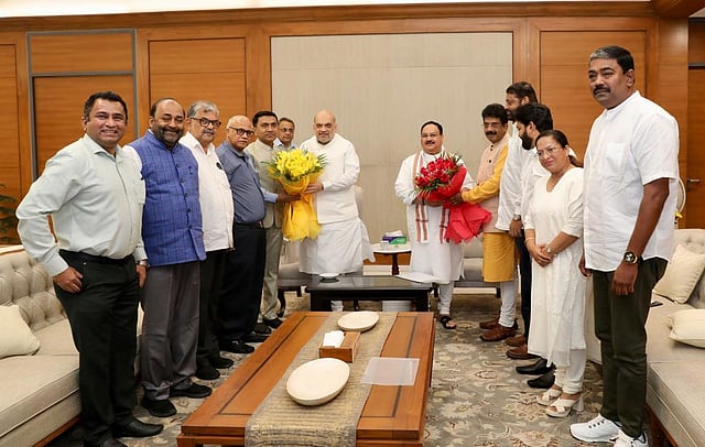 गेल्या आठवड्यात काँग्रेसच्या आठ आमदारांनी भाजपमध्ये (Goa Politics) प्रवेश केला होता. एकीकडे राहुल गांधी यांच्या 'भारत जोडो' यात्रेला सुरुवात झालेली असतानाच गोव्याचे आठ आमदार फुटल्याने काँग्रेसला जबर धक्का बसला होता. भाजपवासी झालेल्या दिगंबर कामत, मायकल लोबो, केदार नाईक, राजेश फळदेसाई, संकल्प आमोणकर, रुडॉल्फ फर्नांडिस तसेच आलेक्स सिक्वेरा या सात आमदारांनी केंद्रीय गृहमंत्री अमित शहा व भाजपचे राष्ट्रीय अध्यक्ष जे. पी. नड्डा यांची सदिच्छा भेट घेतली.