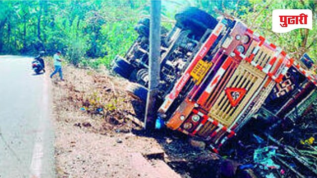पणजी : कुंढईहून हैदराबादकडे टूथपेस्ट घेऊन जाणारा दहाचाकी ट्रक लाडफे आणि लाटबार्से सीमेवरील सोनारभाट येथे एका वळणावर डाव्या कुशीवर कोसळला. चालक उमेश कुमार (रा. उत्तर प्रदेश) याने हा अपघात गुरुवारी रात्री १२ वाजण्याच्या सुमारास झाल्याचे सांगितले.