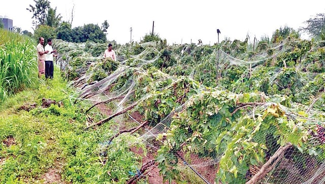 जोरदार वार्याच्या तडाख्याने उभे पिके आडवी झाली आहेत. द्राक्ष, डाळिंब, भाजीपाला अशा सर्वच पिकांना पावसाचा मोठा फटका बसला आहे. घातलेला खर्चही निघणार की नाही, अशी काही ठिकाणी परिस्थिती आहे. शेतकर्यांवर पुन्हा आर्थिक संकट कोसळल्याने बळीराजा चिंताग्रस्त झाला आहे.