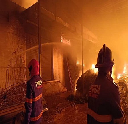 पुणे : वाघोली परिसरातील उबाळे नगर येथे काल रात्री पावणे बाराच्या सुमारास आगीची घटना घडली. शुभ सजावट मंडपाचे साहित्य असणाऱ्या गोडाऊनला भीषण आग लागली. या आगीत चार सिलेंडरचा स्फोट झाला. या आगीची घटना समजताच अग्नीशमन दलाच्या ५ तर पीएमआरडीएच्या ४ अशा एकूण ९ अग्निशमन वाहने घटनास्थळी दाखल झाल्या.