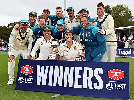 या विजयासह ऑस्ट्रेलियाने जागतिक कसोटी चॅम्पियनशिपच्या गुणतालिकेत दुसरे स्थान गाठले. 12 सामन्यांनंतर त्यांच्या विजयाची टक्केवारी 62.50 झाली आहे. दुसरीकडे सहा सामने खेळणा-या न्यूझीलंडची विजयाची टक्केवारी 50 झाली आहे. या संघाची तिसऱ्या स्थानी घसरण झाली आहे. तर नऊपैकी सहा सामने जिंकून भारत अव्वल स्थानावर आहे. टीम इंडियाची विजयी टक्केवारी 68.51 आहे.