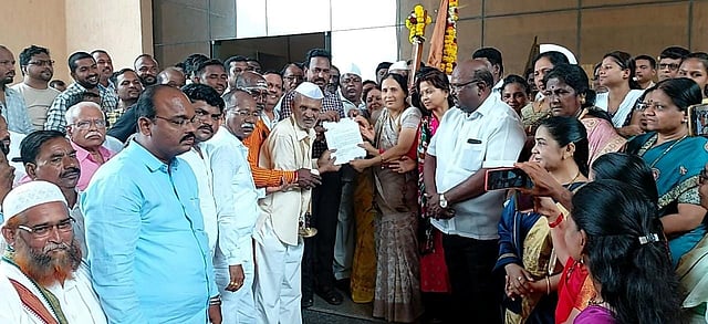 इंदापूर: संत तुकाराम महाराज यांचा पालखी सोहळा इंदापूर शहरात २ व ३ जुलै रोजी मुक्कामी येत आहे. शहरातील पालखी मुक्काम परंपरागत श्री. नारायणदास रामदास हायस्कूल या ठिकाणी ठेवावा यासाठी प्रशासनाचे लक्ष वेधावे म्हणून सोमवारी २० जून रोजी शहरातील सिद्धेश्वर मंदिरापासून पायी भजन, टाळ-मृदुंगाच्या गजरात इंदापूरकरांनी प्रशासकीय भवनापर्यंत पायी वारी करत तहसीलदार श्रीकांत पाटील यांना निवेदन दिले.