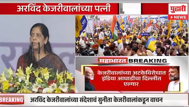 दिल्लीचे मुख्यमंत्री अरविंद केजरीवाल यांच्या पत्नी सुनीता केजरीवाल म्हणाल्या, "तुमच्याच केजरीवाल यांनी तुरुंगातून तुमच्यासाठी संदेश पाठवला आहे. हा मेसेज वाचण्यापूर्वी मला तुम्हाला काही विचारायचे आहे. आमचे पंतप्रधान नरेंद्र मोदी यांनी माझ्या पतीला तुरुंगात टाकले, पंतप्रधानांनी बरोबर केले का? केजरीवालजी हे खरे देशभक्त आणि प्रामाणिक व्यक्ती आहेत यावर तुमचा विश्वास आहे का? हे भाजपवाले म्हणतात की, केजरीवाल तुरुंगात आहेत, त्यांनी राजीनामा द्यावा का? तुमचे केजरीवाल सिंह आहेत, ते त्यांना जास्त काळ तुरुंगात ठेवता येणार नाही, असा विश्वासही त्यांनी व्यक्त केला. (INDIA alliance rally)