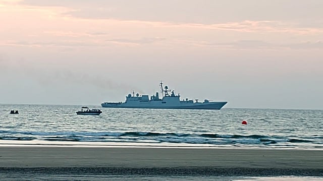 मालवण, पुढारी वृत्तसेवा : नौदल दिनाच्या पार्श्वभूमीवर नौदलाचा पश्चिम कमांडच्या युद्धनौकांचा ताफा सिंधुदुर्ग जिल्ह्यातील मालवण तालुक्यातील तारकर्ली समुद्रात आज अखेर दाखल झाला. मंगळवारी सायंकाळी नौदलाच्या ताफ्याने तारकर्ली समुद्रात सराव केला. या सरावाच्या वेळी आयएनएस कोलकाता, आयएनएस तलवार, आयएनएस ब्रह्मपुत्र, आयएनएस सुभद्रा आदी क्लासच्या युद्ध नौकांनी तारकर्ली समुद्रात एकागोमाग एक असे संचालन केले. तेजस, मिग, डॉर्निअर, चेतक आदी एअरक्राफ्ट व हेलिकॉप्टरनी चित्त थरारक कसरती केल्या. यात मरीन कमांडोंसह अन्य नौदलाचे विभागही सामील झाले होते. नौदलाचा सराव पाहण्यासाठी तारकर्ली किनारी नागरिकांनी मोठी गर्दी झाली होती. या कसरती पाहून नागरिक भारावून गेले तर लडाखु विमानांच्या आवाजाने आसमंत दणाणून गेला होता.