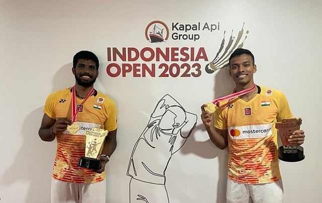 पुढारी ऑनलाईन डेस्क : इंडोनेशिया ओपन पुरुष दुहेरीच्या अंतिम फेरीत भारताच्या सात्विक साईराज रँकीरेड्डी आणि चिराग शेट्टी यांनी बाजी मारली. या जोडीने मलेशियाच्या आरोन चिया आणि सू वू यिक या जोडीचा ४३ मिनिटांमध्ये २१-१७, २१-१८ असा विजय नोंदवला. ( Indonesia Open 2023)
