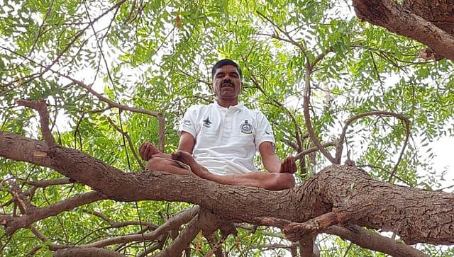 नवव्या आंतरराष्ट्रीय योग दिनाच्या निमित्ताने योग शिक्षक बाळू मोकळ यांनी चक्क कडुलिंबाच्या झाडावर योगासने करीत अनोख्या पद्धतीने योग दिवस साजरा केला आहे. नाशिक जिल्ह्यामधील नांदगाव तालुक्यातील जगधने वाडा येथे कडूलिंबाच्या झाडावर त्यांनी सूर्य नमस्कारासह तब्बल अर्धातास ५१ योगासन करून यंदाची 'वसुदैव कुटुंबकम' ही थीम योग दिनाच्या पार्श्वभूमीवर साजरी केली. त्यांच्या या प्रयोगाची सर्वत्र चर्चा रंगली आहे. (International Yoga Day)
