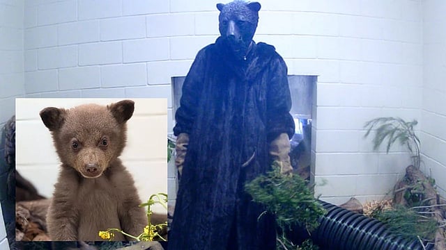 या संस्थेत काम करणाऱ्या ऑटम वेल्च या महिला कर्मचारी कामावर जाताना फरचा कोट, लेदरचे ग्लोव्हज आणि अस्वलाचा मुखवटा घालतात. जेव्हा त्या अस्वलाच्या वेषात पिंजऱ्यात जातात, तेव्हा ते पिल्लू त्यांच्यासोबत खेळते. अस्वलाच्या पिल्लाला त्याची आई वाटावी म्हणून वन्यजीव केंद्रातील एका कोपऱ्यात मोठा टेडी अस्वल ठेवले आहे. पिल्लू घाबरले की ते त्याच्याकडे धावत जाते आणि टेडीला बिलगते.