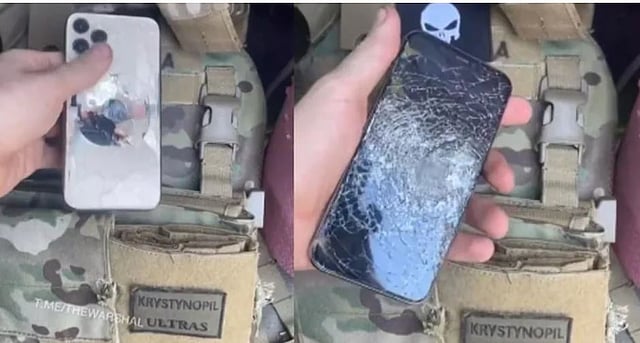 'रेडिट थ्रेड'वरील माहितीनुसार, iPhone 11 Pro मुळे युक्रेनमधील एका जवानाचे प्राण वाचले आहेत. रेडिट थ्रेडमध्ये एक व्हिडिओ आहे. यामध्ये युक्रेनचा एक जवान आपला आयफोन दाखवत आहे. बॅकपॅकमध्ये अडकलेल्या बुलेटसह खराब झालेला आयफोन तो बाहेर काढत असल्याचे या व्हिडिओमध्ये दिसते. जवानाच्या खिशातील iPhone 11 Pro गोळी लागली मात्र ती जवानाला लागली नाही. फोनचे नुकसान झाले; पण या फोनने माझा जीव वाचवला, असे या जवानाने म्हटलं आहे.