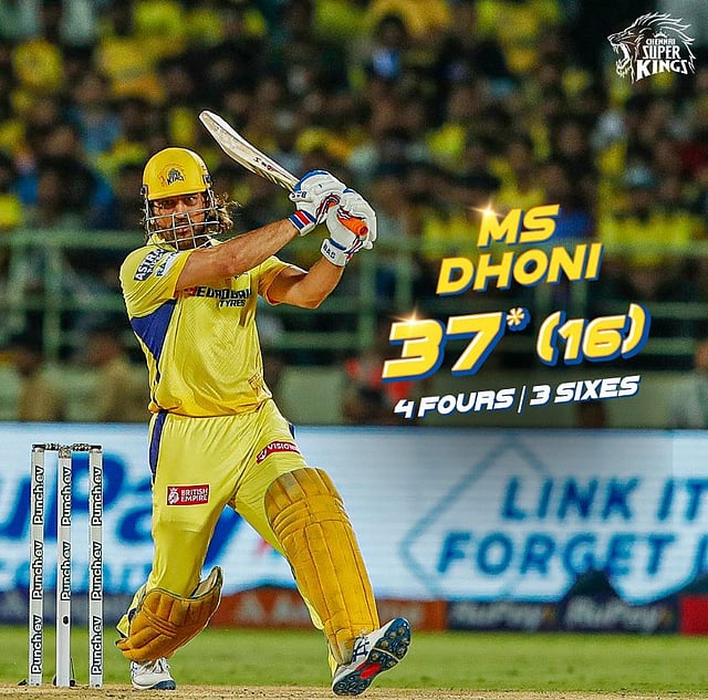 धोनी या मोसमात प्रथमच फलंदाजीसाठी आला आणि त्याने अपेक्षेप्रमाणे कामगिरी केली. गेली एक वर्षांहून अधिक काळ त्याचे चाहते ज्या खेळीची वाट पाहत होते. या सामन्यात आठव्या क्रमांकावर आलेल्या धोनीने 16 चेंडूंचा सामना करत 37 धावांची तुफानी खेळी खेळली. धोनीने पहिल्या चेंडूवर चौकार मारला. यानंतर आकर्षक फटकेबाजी केली. धोनीने चार चौकार आणि तीन षटकार फटकावत चाहत्यांची मने जिंकली. धोनीने रवींद्र जडेजासोबत ५१ धावांची भागीदारी केली, पण ती सीएसकेला विजय मिळवून देण्यासाठी पुरेशी ठरली नाही.