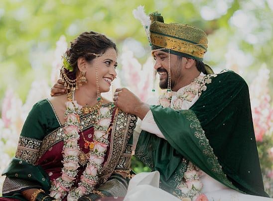 अभिनेत्री योगिता चव्हाण ( Yogita Chavan ) हिने अभिनेता सौरभ चौघुलेसोबत नुकतेच मोठ्या थाटामात लग्न केलं. या लग्नातील काही खास फोटो आणि व्हिडिओ तिने तिच्या इन्स्टाग्रामव शेअर केलं आहेत. यावेळी योगिताने डार्क ब्राऊन नऊवारी साडीवर ग्रीन कवलरचा ब्लॉऊजमध्ये वनवधूच्या वेशभुषेत खूपच क्यूट दिसत होती. तर सौरभने व्हाईट शेरवानीवर ग्रीन कलरचा शेला- फेटा घेतला होता. तोही खूपच हँडसम दिसत होता. यावेळी कपलच्या गळ्यात फुंलाच्या माळ्या दिसत होत्या. हातात हिरवा चुडा- अंगठी, केसांचा अंबाडा, त्यावर गजरा, गळ्यात दागिने आमि मेकअपने तिने तिचा लूक पूर्ण केलाय.