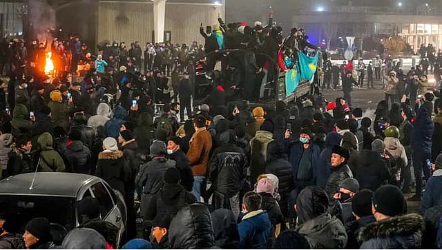 राष्ट्रपती हे विधान करत असताना अल्माटीमध्ये पोलिसांनी आंदोलकांवर अश्रुधुराचा मारा आणि हातबॉम्ब सोडले. हजारोंच्या संख्येने उपस्थित असलेल्या आंदोलकांना महापौर कार्यालयात प्रवेश करण्यापासून रोखण्याचा पोलिसांचा प्रयत्न होता. या तेलसंपन्न देशात, सरकारने मंगळवारी उशिरा घोषणा केली की ते एलपीजीच्या किमती पूर्ववत करत आहेत. तत्पूर्वी, नवीन वर्षाच्या दिवशी अशा प्रकारच्या दुर्मिळ प्रदर्शनात, एलपीजीच्या किमती वाढल्यानंतर आंदोलक अल्माटी शहरात पोहोचले.